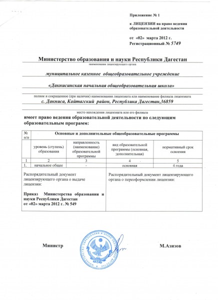| Адрес местонахождения образовательной организации* | 368590, Республика Дагестан ,Кайтагский район с. Дакниса, ул. Интернациональная 27 |