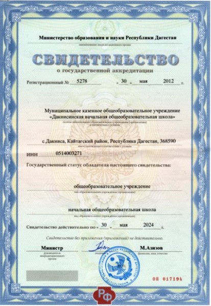 | Полное наименование образовательной организации* | Муниципальное казенное образовательное учреждение "Дакнисинская начальная общеобразовательная школа" |